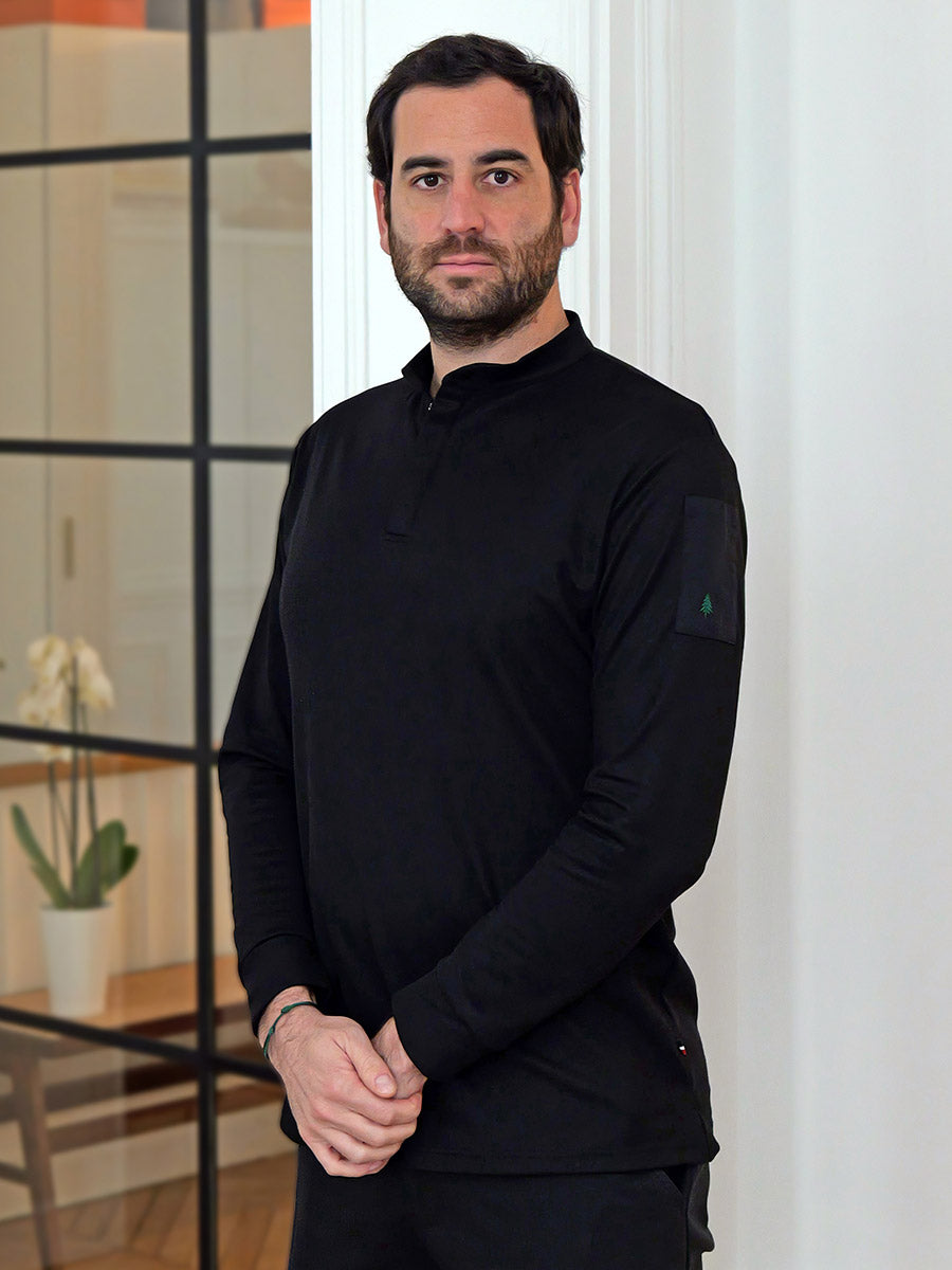 Pen pocket on the left sleeve with elegant embroidery of our Vosges fir tree.