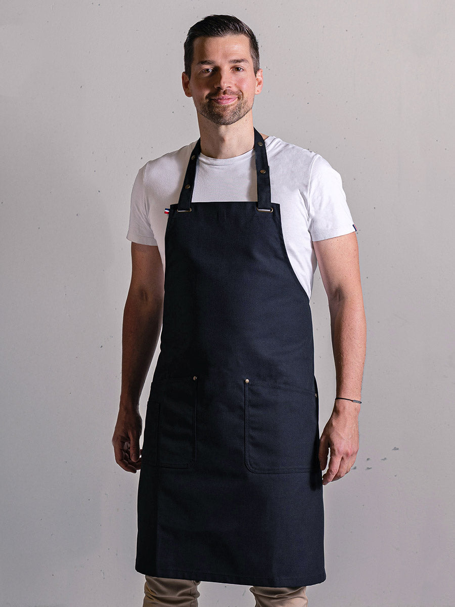 Unisex bib apron for men and women made from cotton in the Vosges.