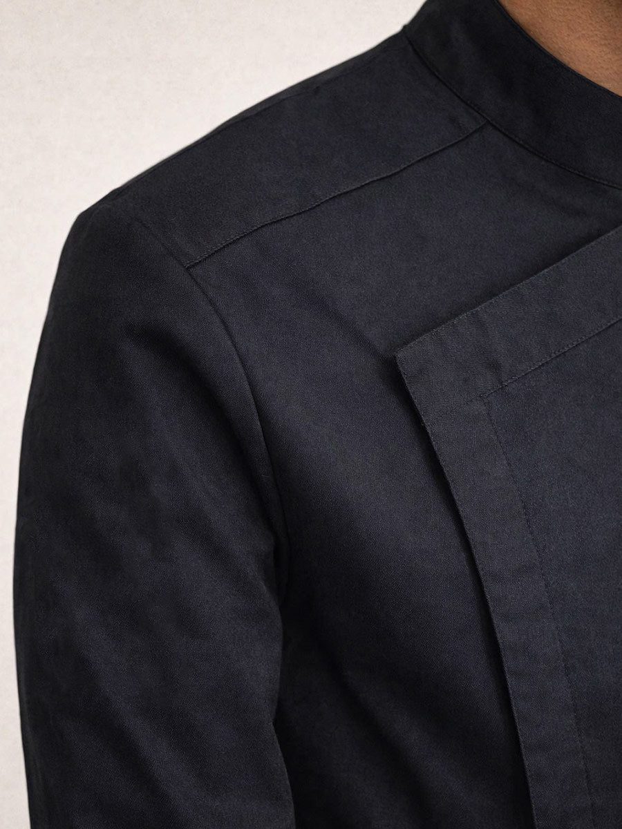 Veste de cuisine homme en polycoton avec fermeture asymétrique.