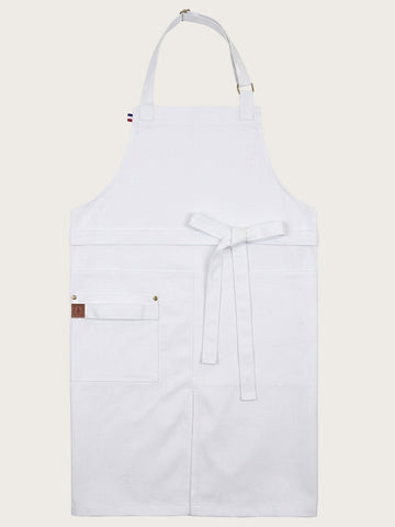 Tresses de cou et de taille amovibles avec système de boutons pression pour ajuster au mieux le tablier.