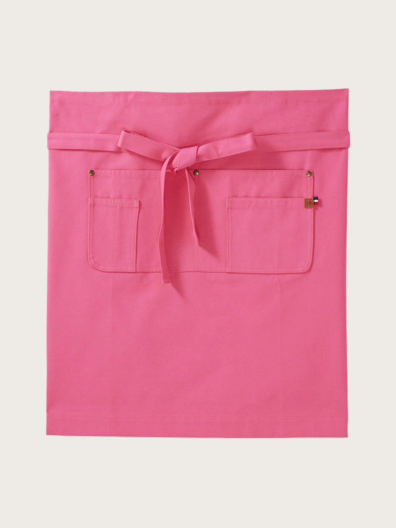 Tablier type demi chef conçu dans un tissu polycoton rose épais, confortable et simple d'entretien.